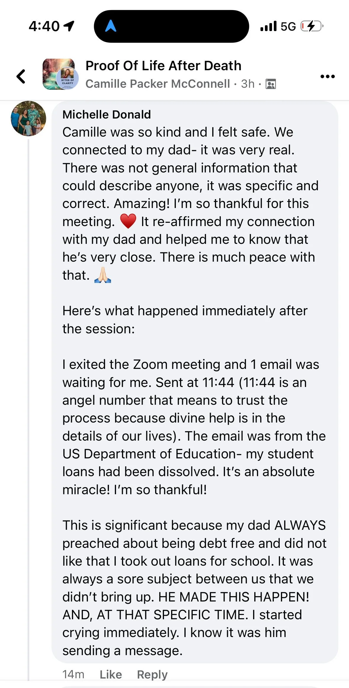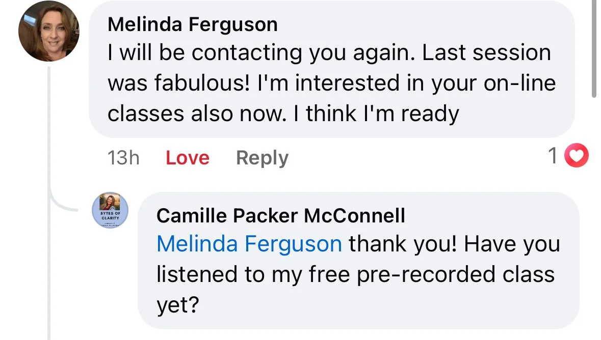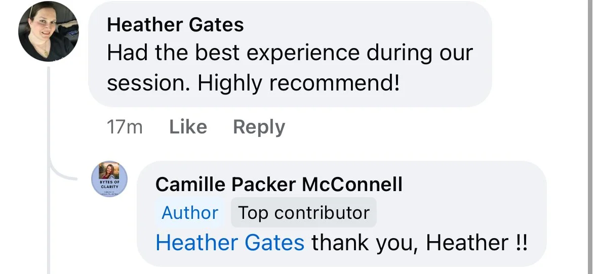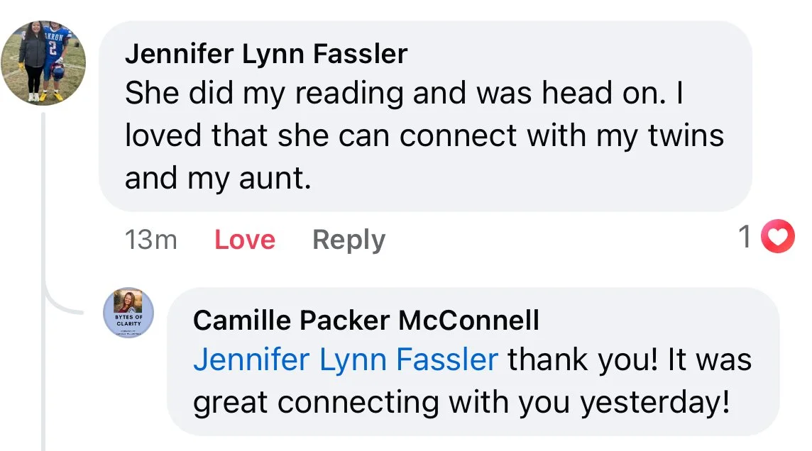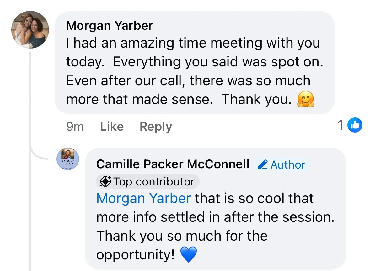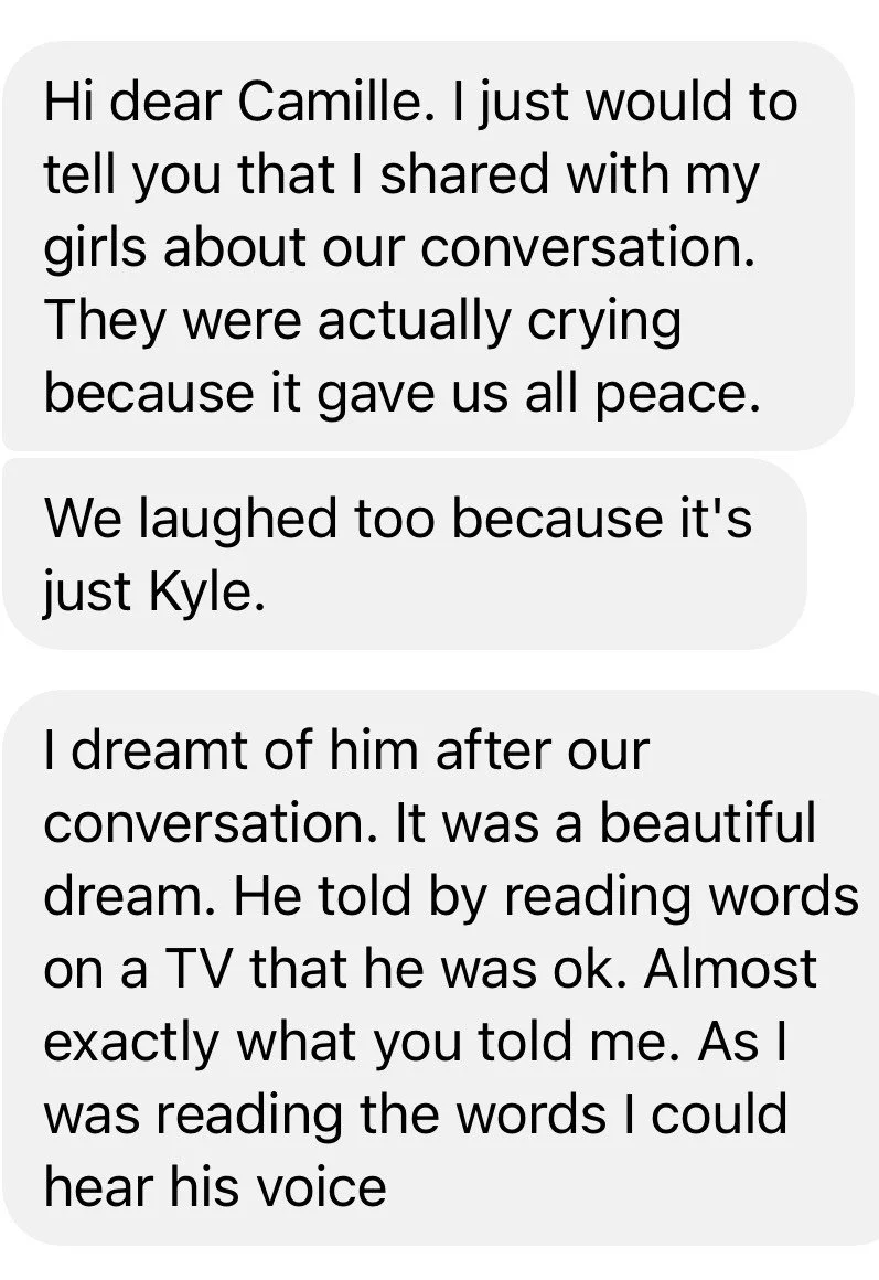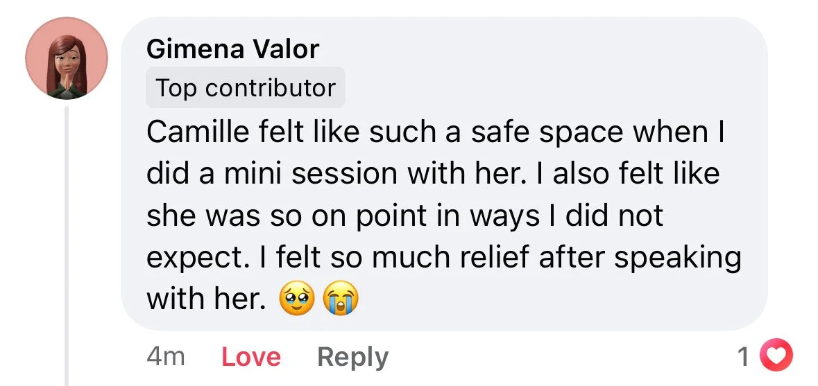 I’m Camille, and I believe we are spiritual beings having an earth life experience. We come from a divine origin and have inherent spiritual wisdom. Our life’s purpose is to learn, grow, love, and walk each other home. Any growth or healing we accomplish in this life, we take with us after we transition AND ripples in both directions, also helping our loved ones on the other side. Connection adds light to the world.